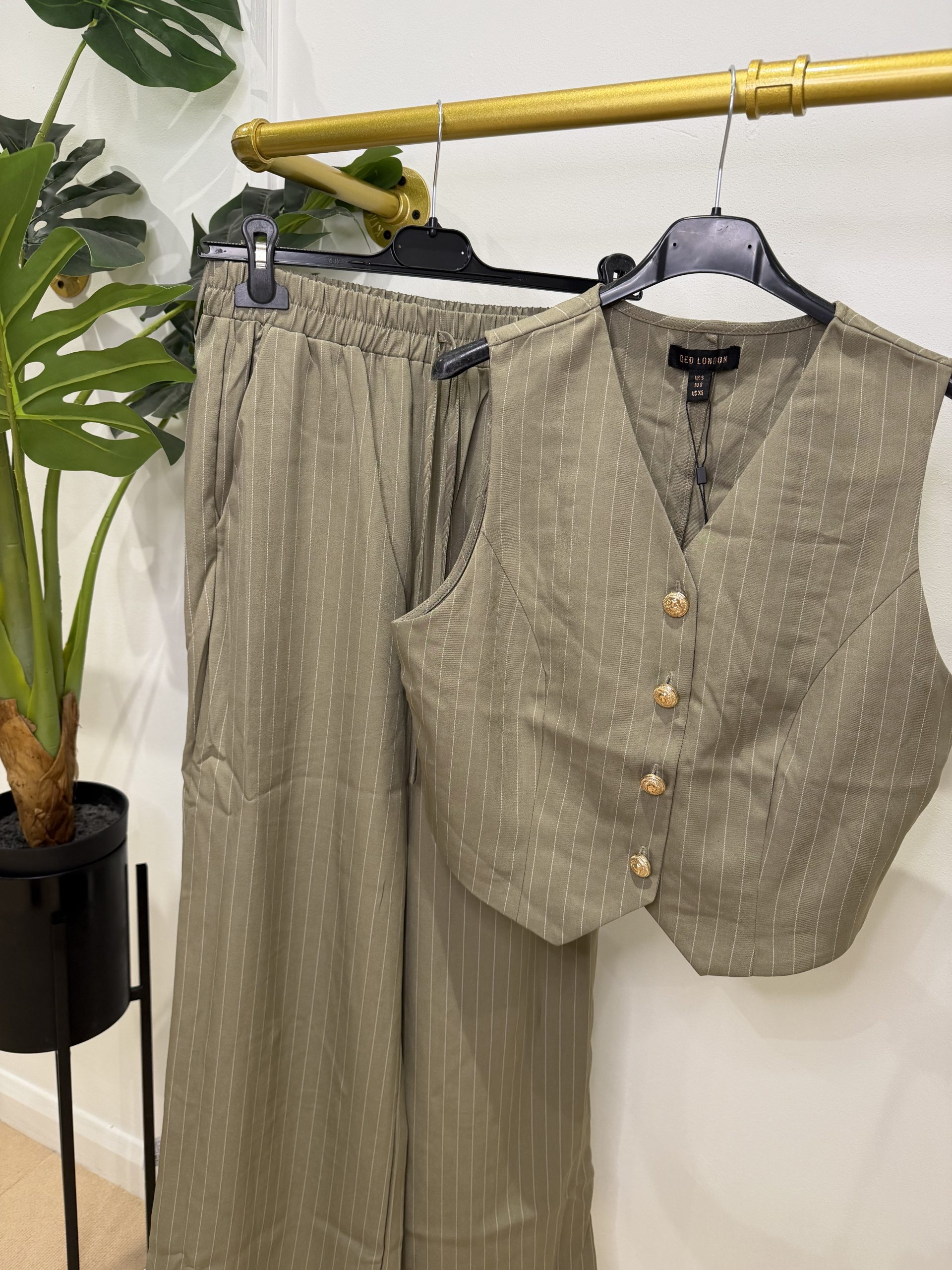 Tash Gold Button Khaki Trouser Set
